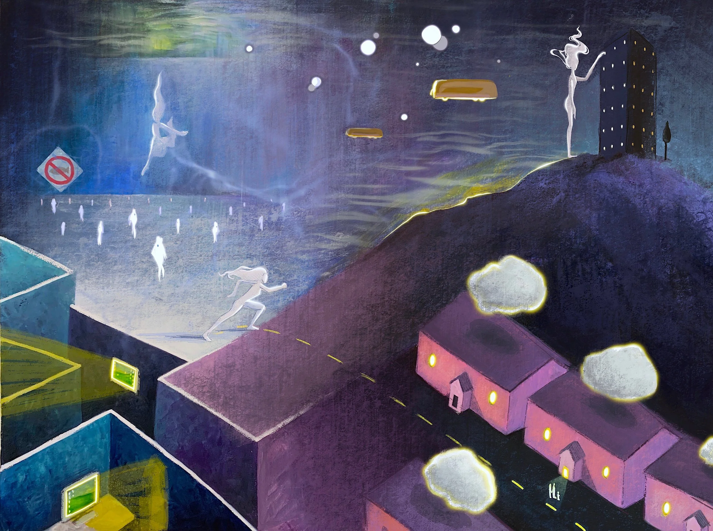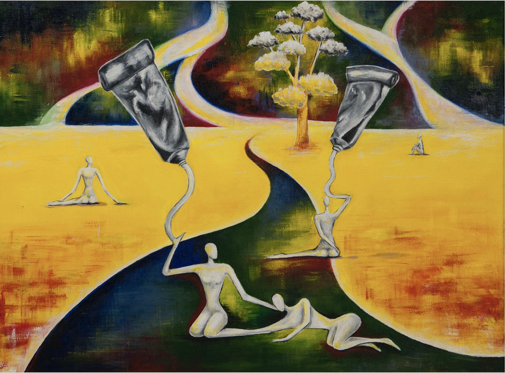"Drescape" (2021), Acrylic on paper with digital alterations